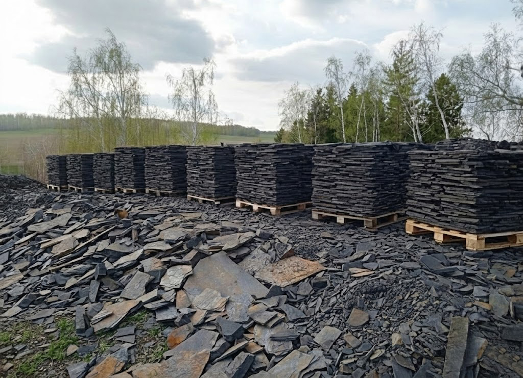 Минимальные партии: плитняк и плитка — от 1 м², декоративный щебень — от 1 м³, валуны — от 1 шт.